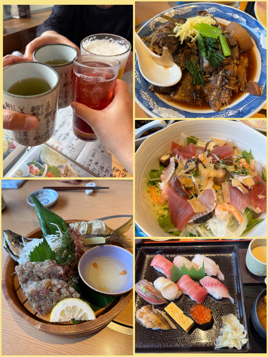 乾杯 昨日は毎日暇を持て余している両親にも声をかけて。。。館山で私の誕生日祝い、かんぱーい⭐️もう今年限りでいいから!とそういう歳じゃないしって話しながら 父と二人お酒呑んできたんだけど、このあたりから急に体調がイマイチになった相変わらずのワタシ🥲食べきれないほどのあら煮と海鮮サラダより、父の生大ジョッキ🍺が高かった💦